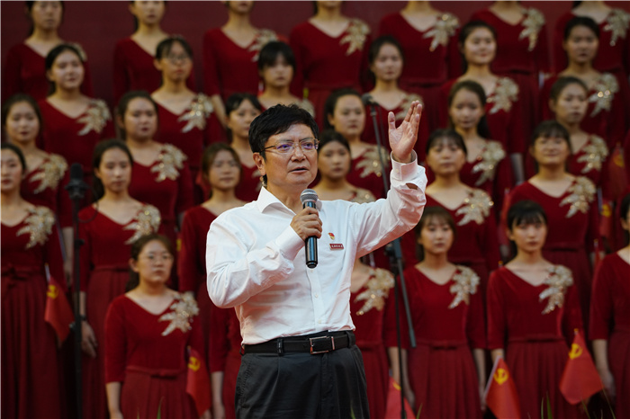 郑强在致辞中希望在中国共产党成立100周年之际,在全党上下深入开展党史学习教育之时,全校师生继承和发扬党的光荣传统和优良作风,用歌声表达对伟大的党的感恩、对伟大祖国的热爱、对未来的无限憧憬。